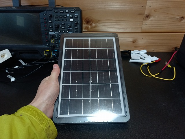 今回は電源装置ではなく、取り出せる電流が限られたソーラーパネルから充電になります。