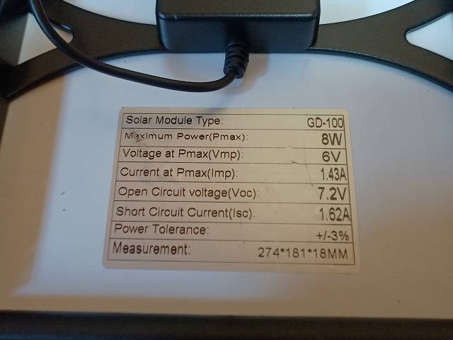 ただソーラパネルを雨ざらしになるところに置いておかないといけないので、ちょっと置き場所は考え物。