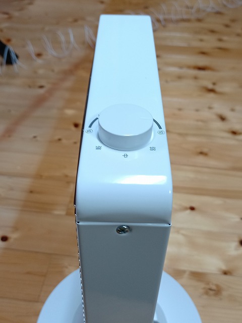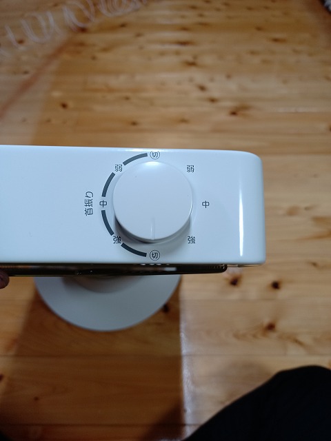 上部にはつまみがついており、ここで首振り機能の有無、温度の調節を行います。