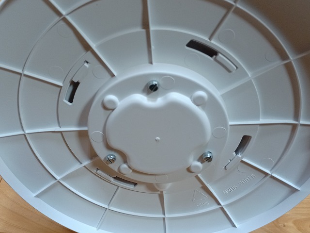 はめ込んだら裏返し、接手の切り欠きをコードが出ている位置に合わせてねじを3本とめます。