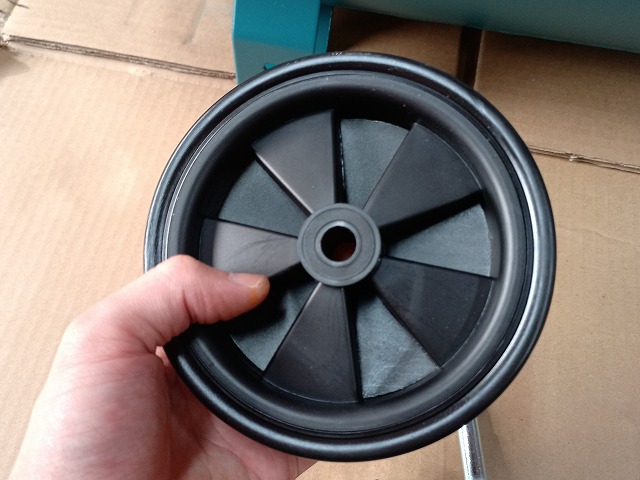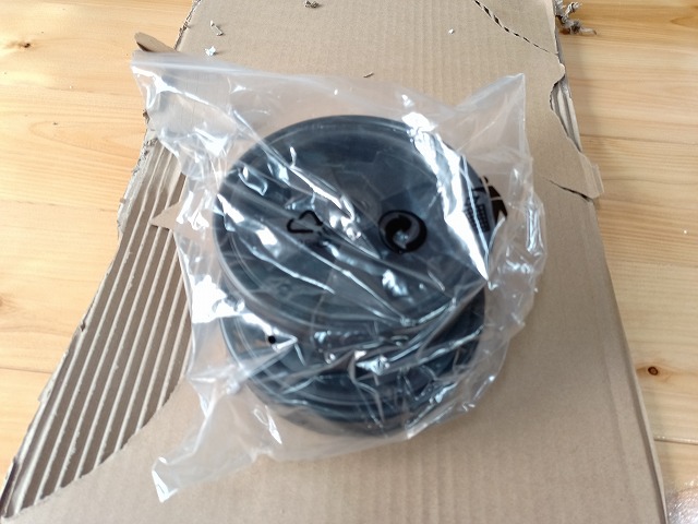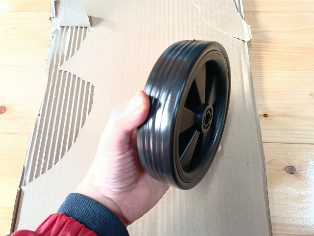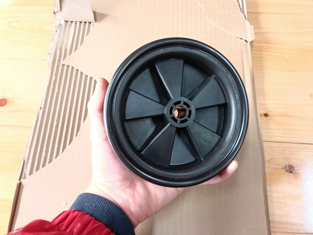 現物はこんな感じ。プラ製のホイールの外周にゴムがまかれています。