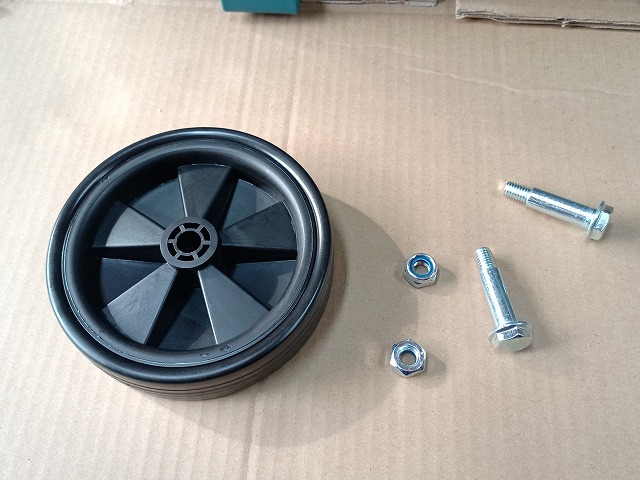 タイヤは付属のボルトとロックナットを使用して取り付けます。