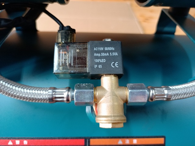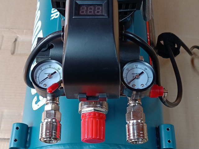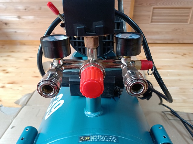 出力口には吐出圧力を調整できるバルブと、ワンタッチチャックが取り付けられています。