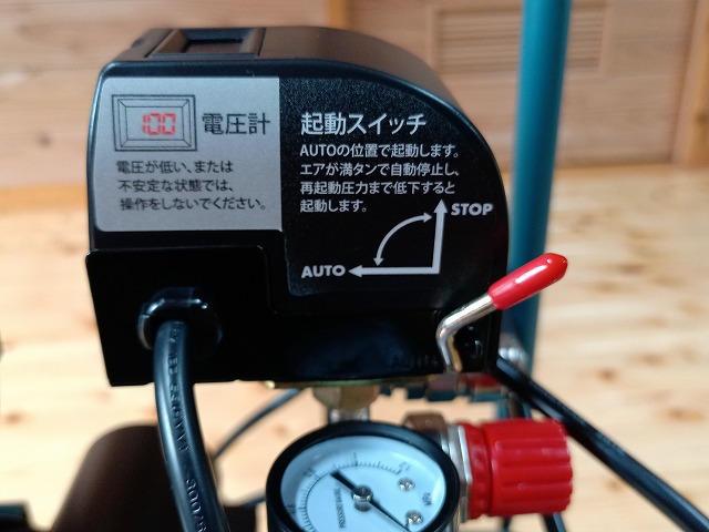 スイッチをONにすると、若干電圧が低下し、圧力メータが上昇し始めます。